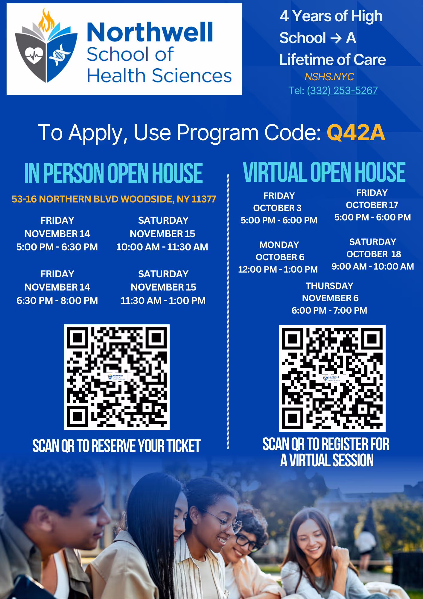 NSHS is a groundbreaking new high school designed in deep partnership with Northwell Health specifically to set you up for success. Learn how.